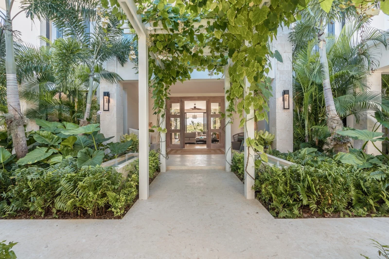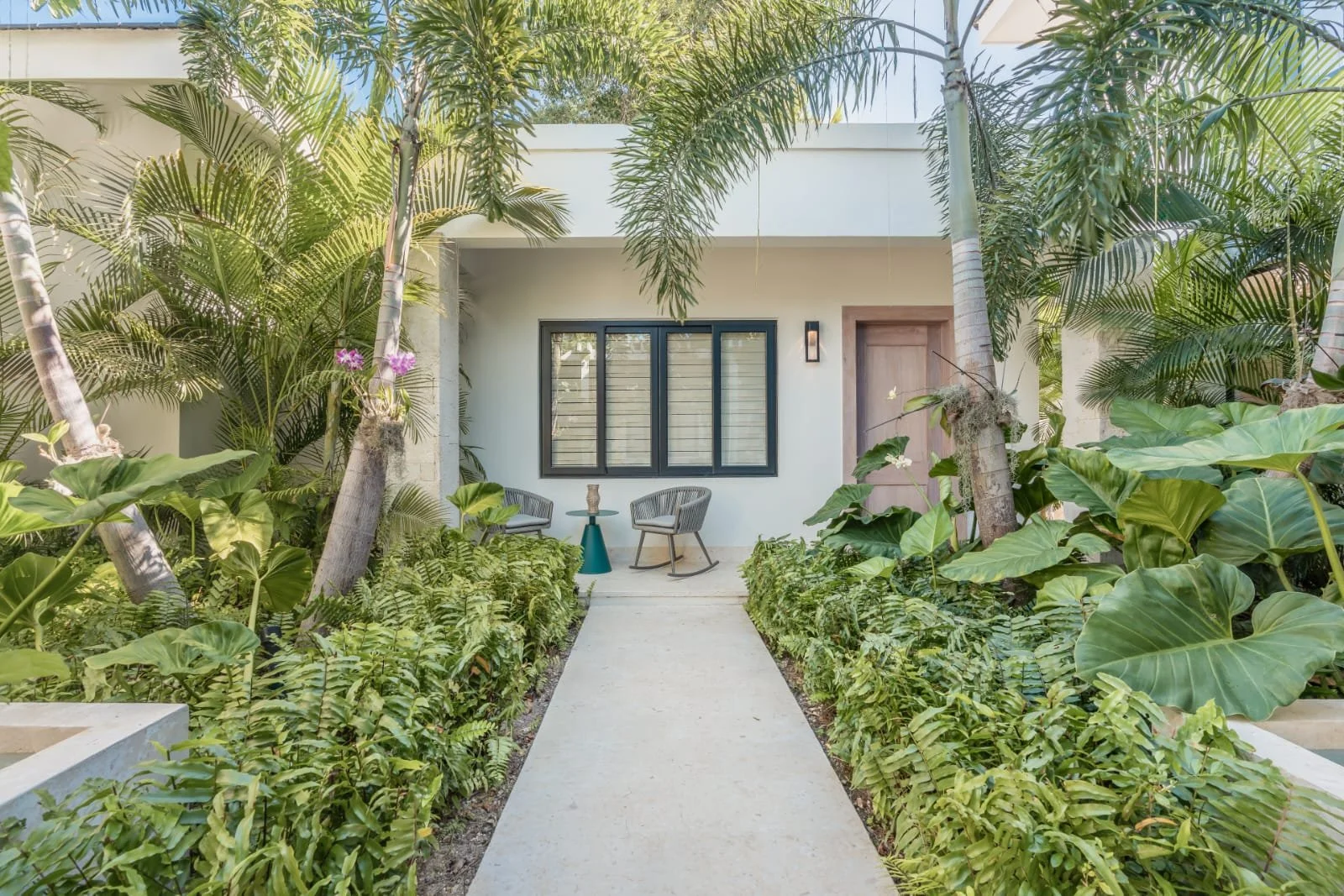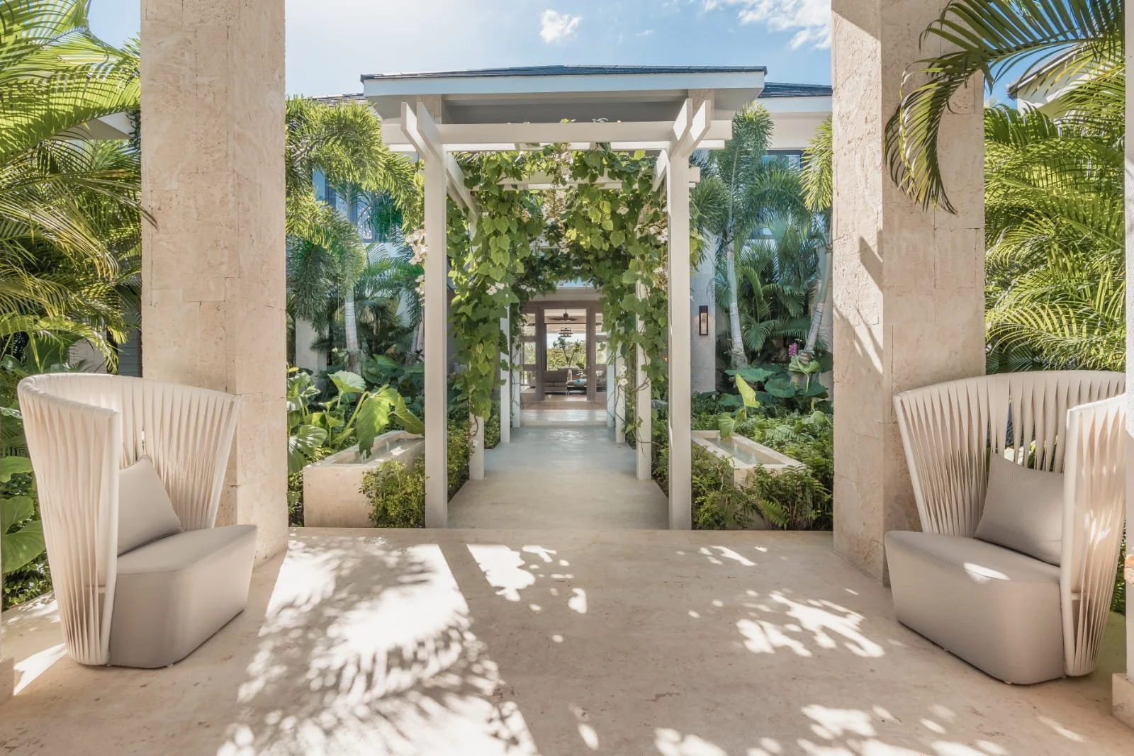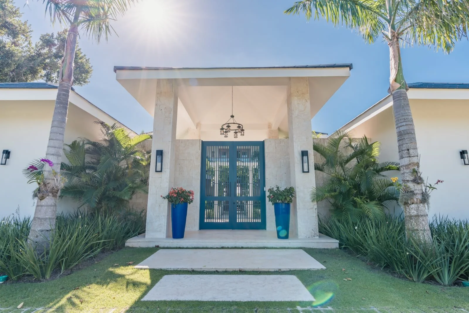 Hacienda B34, located in our HACIENDA GOLF COURSE, exudes elegance and luxury. It features a sprawling layout with a central structure, reflecting a modern yet tropical architectural style. The dark-tiled hip roof contrasts beautifully with the clean, white exterior walls, adding a sophisticated touch.