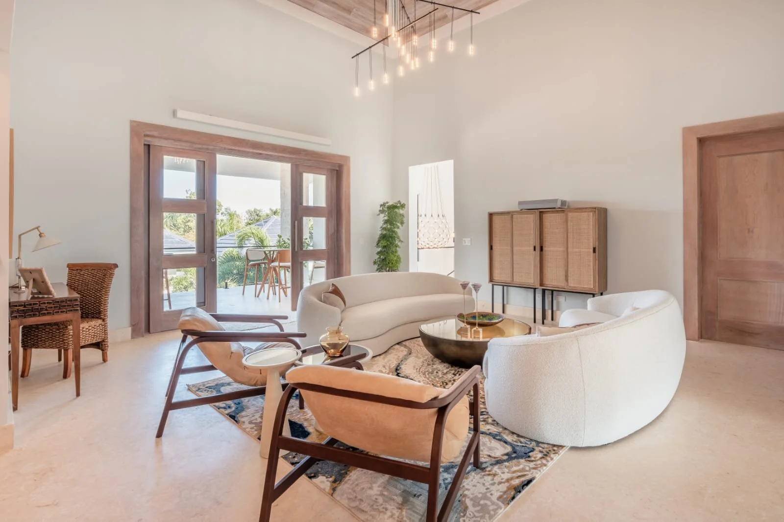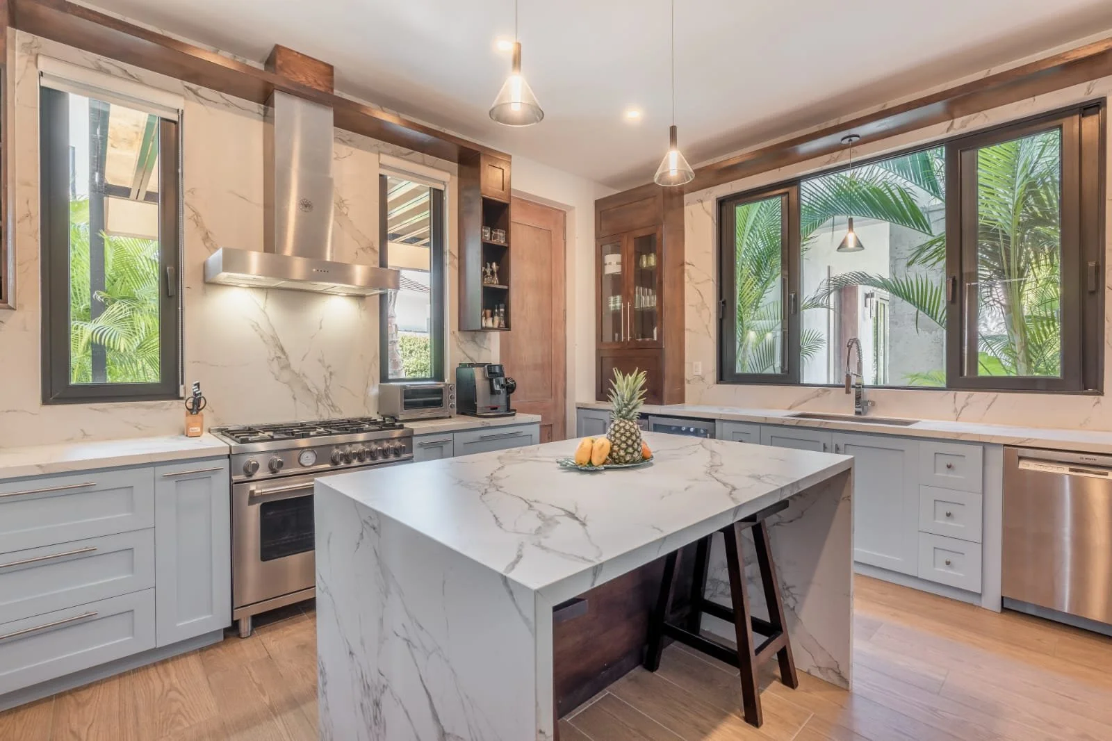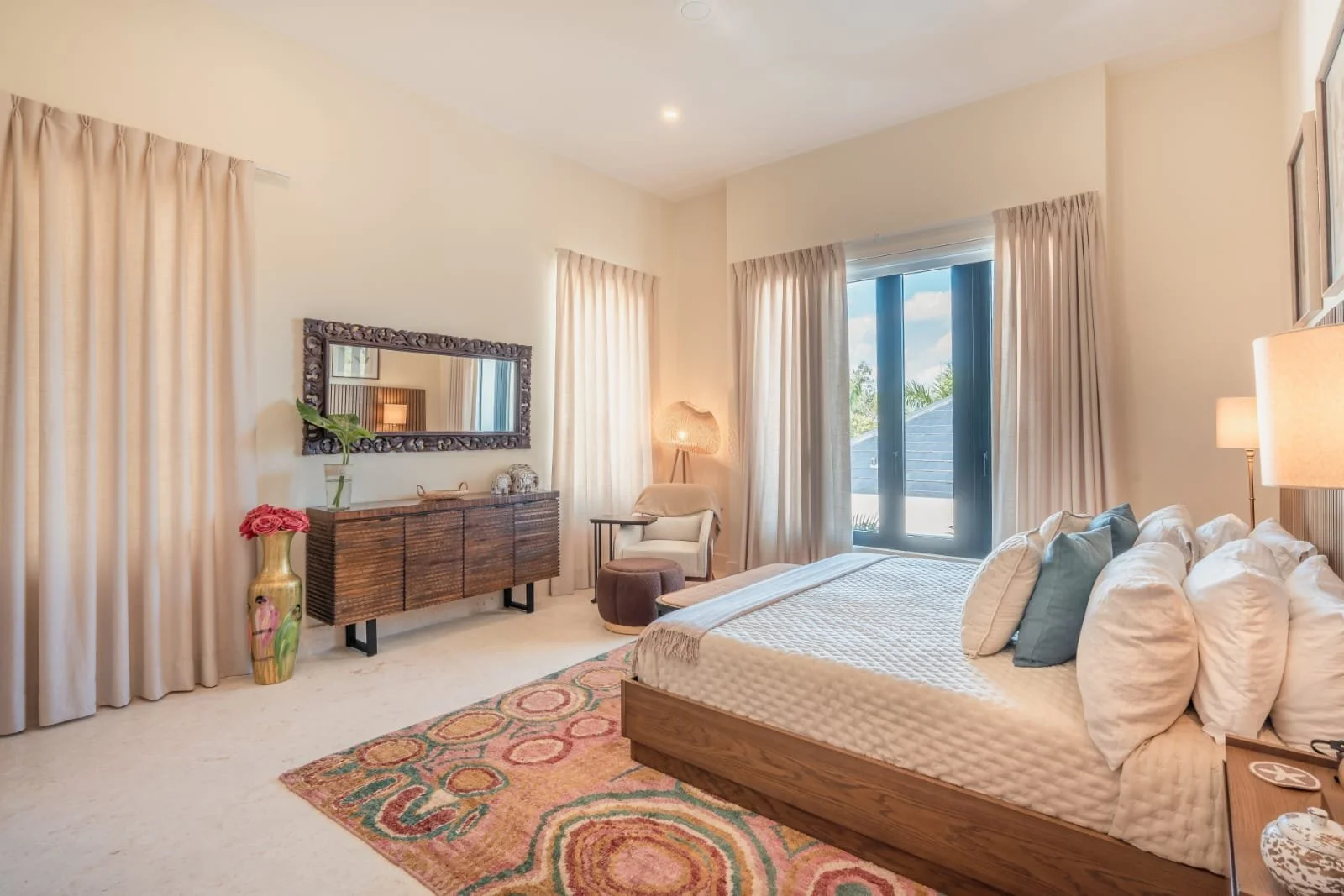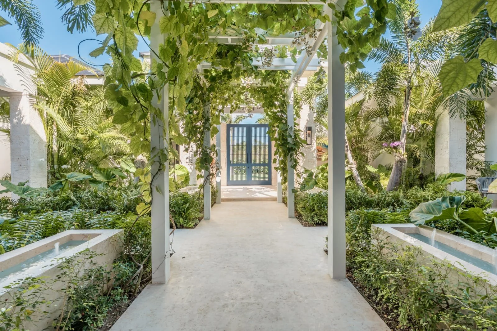 Hacienda B34, located in our HACIENDA GOLF COURSE, exudes elegance and luxury. It features a sprawling layout with a central structure, reflecting a modern yet tropical architectural style. The dark-tiled hip roof contrasts beautifully with the clean, white exterior walls, adding a sophisticated touch.